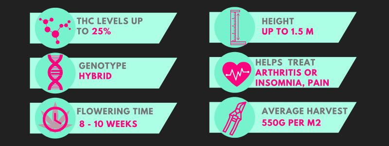 Indoor Yield: 1.47 - 1.82 oz/ft² | 450 - 550 gr/m²