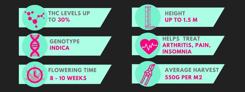Indoor Yield: 1.64 - 1.82 oz/ft² | 500 - 550 gr/m²